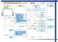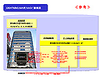 大型ビジョンを構成している機器類(製品番号、製造メーカー名等)接続しているケーブル名又は通信回線名をシステム・ブロック図として記入する。