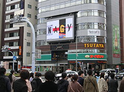 JR新幹線名古屋駅前。ビックカメラに隣接した1日16万人以上のロケーション。FreeSpotによるインタラクティブなメディア空間をも実現。