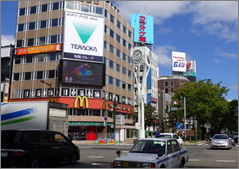 北日本最大の歓楽街ススキノの起点となる「ススキノ交差点」に設置。日本全国はもとより世界中から訪れる観光客をはじめ札幌市内のビジネスマンに広くアピールすることが可能です。