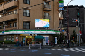 世田谷通りと狛江通りが交差する狛江三叉路交差点に設置されています。災害発生時は行政からの情報を発信する防災ビジョンとしての役割を担っています。