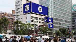 特徴的なL字型ビジョンで、その特性を生かした“肉眼3D広告”の放映が可能